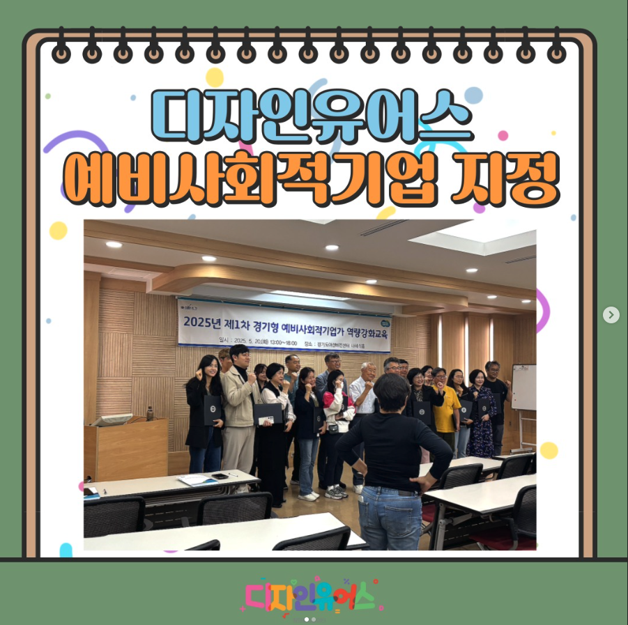 미션]경계선 지능아동과 느린학습자가 차별 없이 자신의 속도와 방식으로 배우고 성장할 수 있도록,창의적 학습과 맞춤형 교육을 제공하여 학습 격차를 해소하고 자립을 지원한다. 비젼] 경계선 지능 아동과 느린학습자가 학습에서 배제되지 않고 사회 속에서 자립할 수 있는 세상을 만든다 , 창의적 학습을 통해 자신의 가능성을 발견하며 사회속에서 자립이 가능한 세상을 만든다. 우리, 예비사회적기업이 되었어요! 🌱‘모두를 위한 교육’을 만들겠다는 마음 하나로느린 걸음이지만 꾸준히 달려왔어요.누구도 배움에서 뒤처지지 않도록,각자의 속도로 배울 수 있도록.그 길을 사회가 ‘가치 있다’고 인정해줬다는 게 너무 뭉클하고, 또 감사해요. 앞으로도 더 많은 아이들이자신만의 방식으로 배울 수 있도록 디자인유어스는 계속 움직일게요! 💛